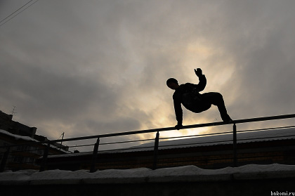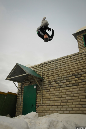 Валентин: - Да, некоторые даже матом орут. Но мы же не просто так прыгаем. Каждое место проверяем, сугробы иногда сами готовим, лопата даже для этого есть. И к сложным элементам не сразу переходим. Начинали с простой акробатики - переднее, заднее сальто, потом уже боковое; «винт» пробовали, приемы преодоления препятствий. Тренировались зимой в сугробах, а когда стало получаться, стали прыгать на песок, на траву, постепенно на асфальт перебрались. Лучшее, конечно, это опилки - они самые мягкие, даже если головой упадешь, ничего страшного.