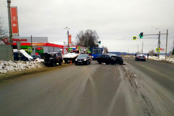 ДТП случилось сегодня утром на пересечении Октябрьского проспекта с улицей Магистральной. Водители обеих машин госпитализированы.