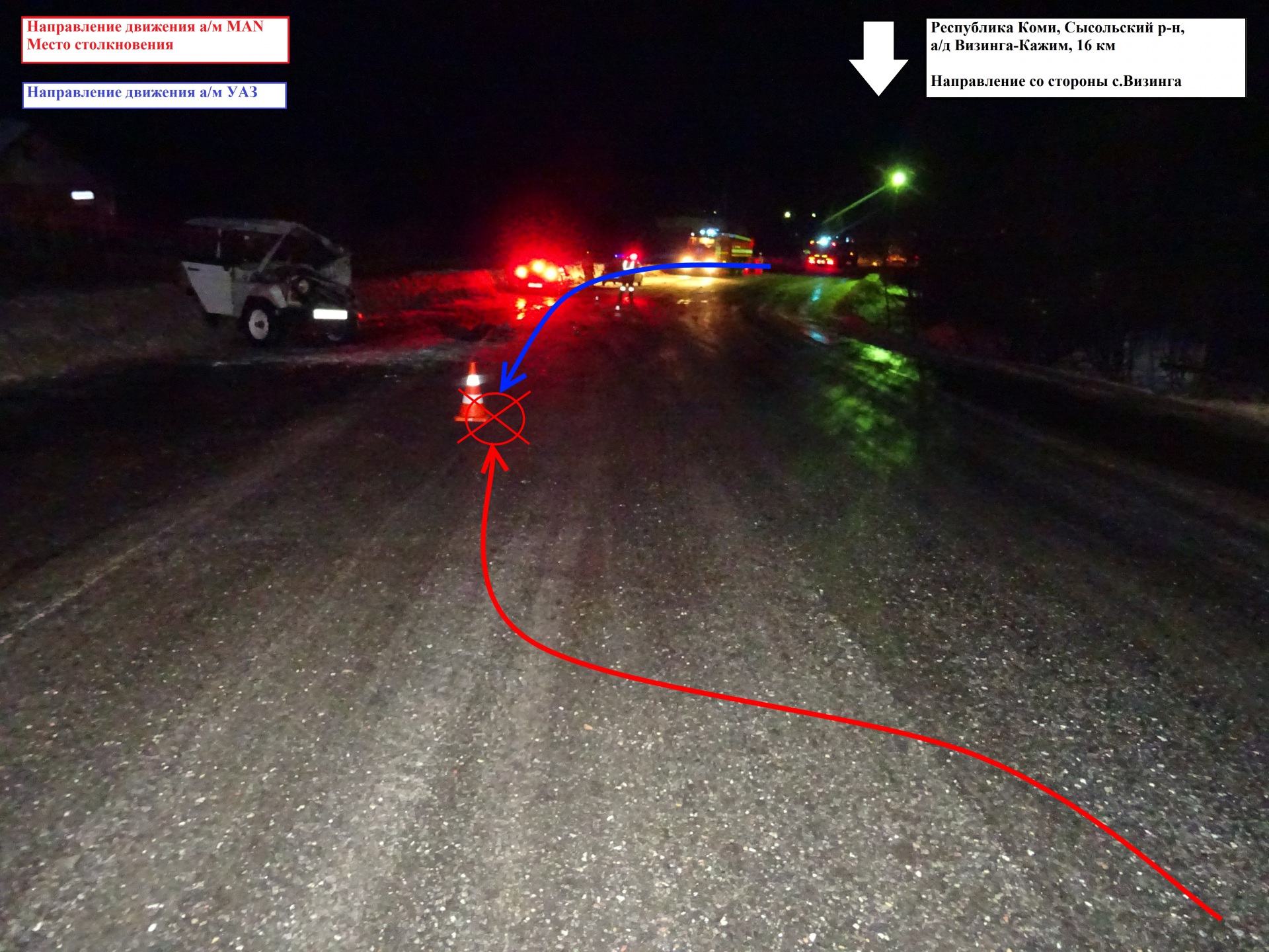 Как рассказали БНК в УГИБДД по Коми, ДТП произошло 16 января в 19:45 на 16-м километре автодороги Визинга - Кажим. Водитель 1977 года рождения на автомашине MAN ехал со стороны Визинги и допустил занос прицепа. В результате произошло столкновение с двигавшимся по встречной полосе УАЗом.