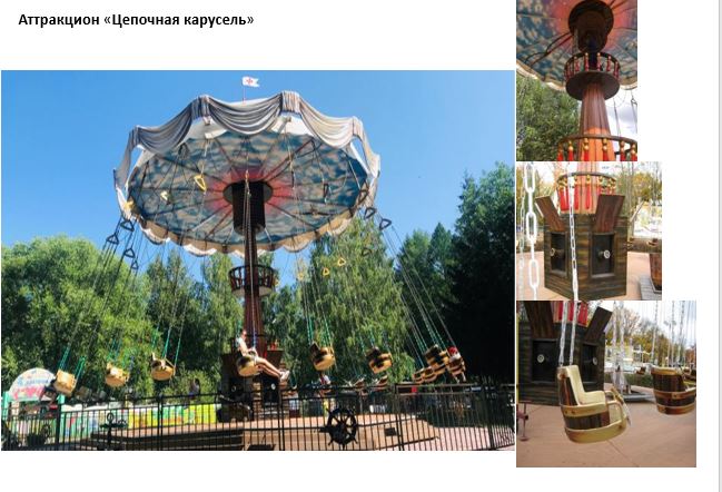 Также в списке: аттракцион механизированный «Лодка Викинг», оформленная в пиратском стиле, аттракционы «Вальс ракушек» и «Цепочная карусель», «Башня свободного падения» высотой не больше 20 метров и не более 12 посадочных мест, «Кенгуру», «Динозавр», «Поезд Лошадки» и минимум шесть детских качалок.