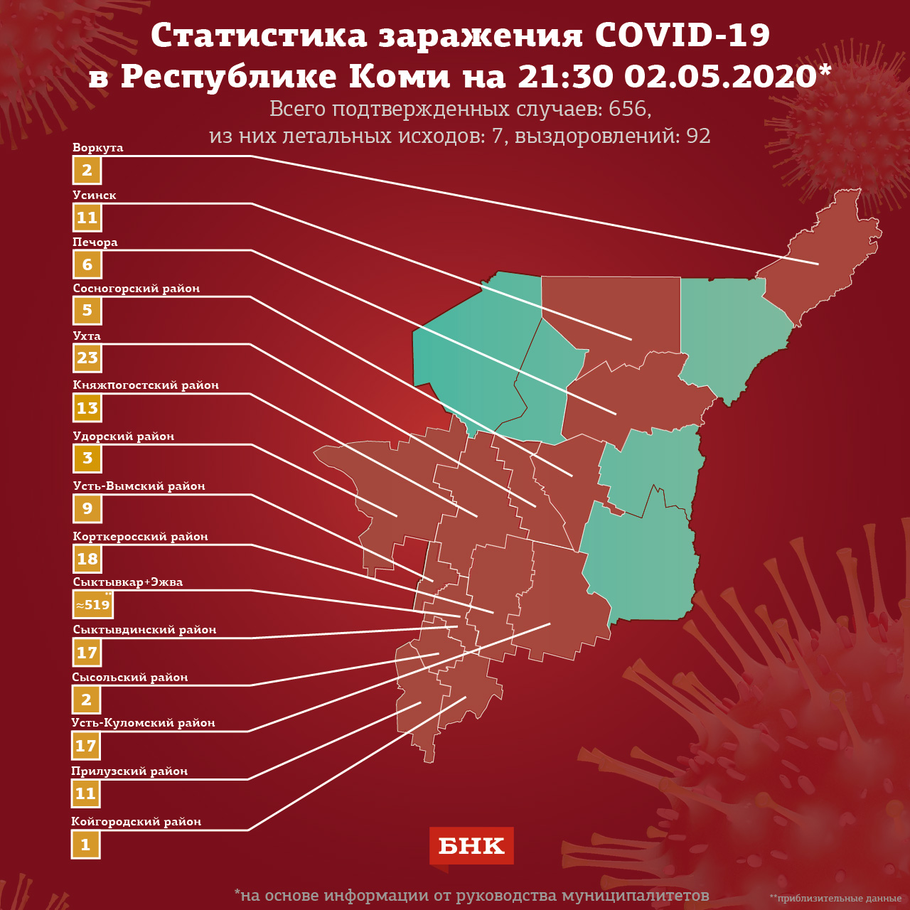 По официальной статистике, всего в республике 656 случаев заражения коронавирусом. За сутки прирост новых заболевших составил 7 человек. Выздоровевшими считаются 92 человека, скончались 7 пациентов с COVID-19. На 2 мая под наблюдением медиков 2546 человек из числа «контактных» и приехавших из-за рубежа.