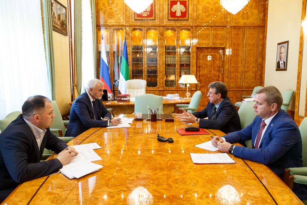Врио главы Коми провел встречу с первым вице-президентом регионального объединения работодателей Союза промышленников и предпринимателей Республики Коми Олегом Абрамовым.