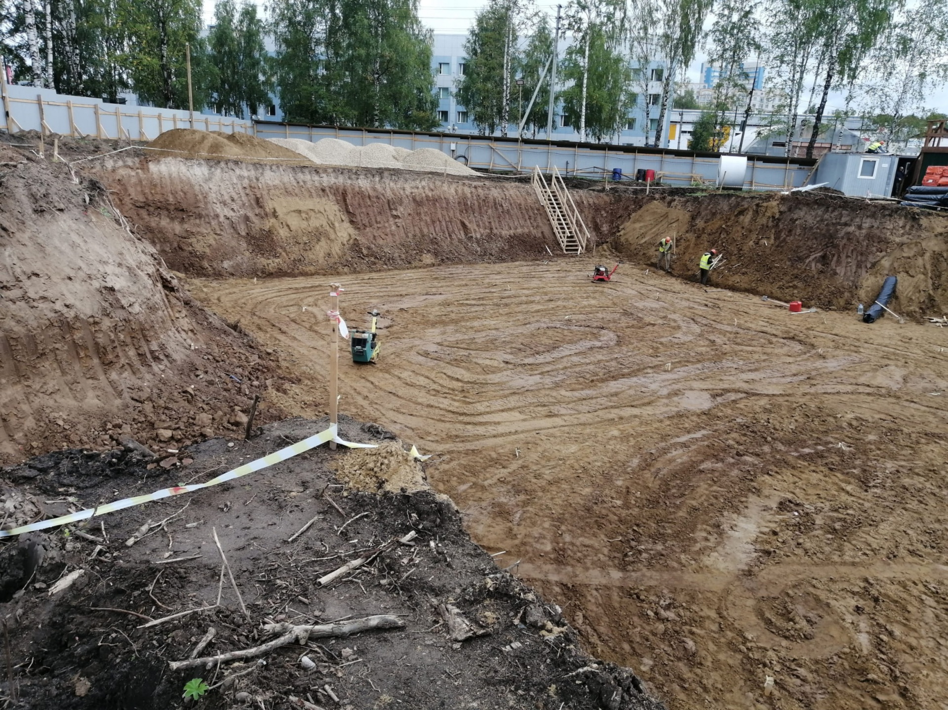 Строительство новой больницы ведется в два этапа. На первом этапе будет построено здание больницы на свободном земельном участке без прекращения работы действующего стационара. Сейчас рядом с существующим корпусом Республиканской инфекционной больницы вырыт котлован под новое здание.