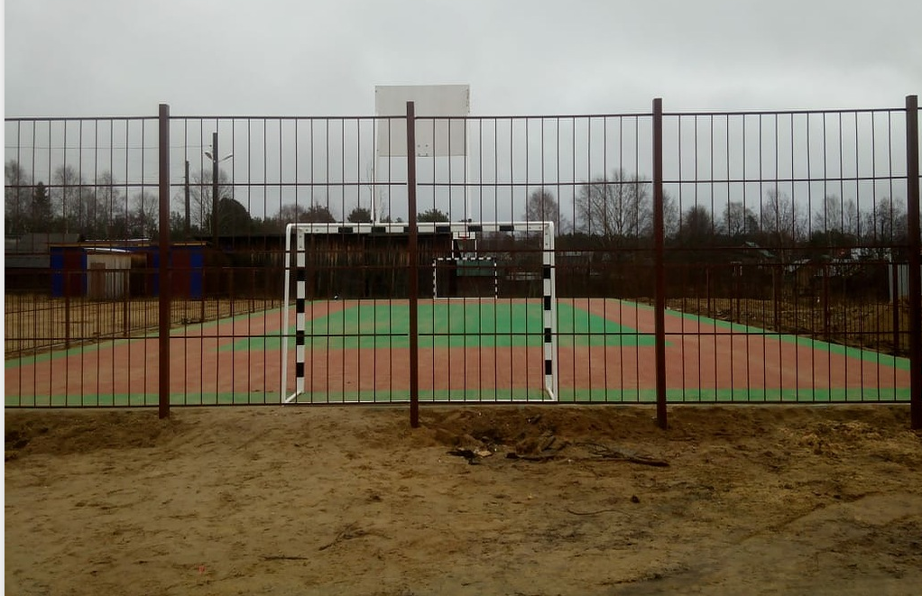 Для реализации столь значимого для поселка проекта проведены работы по сносу сгоревшего здания бывшего магазина, проведена планировка территории, установлено ограждение, футбольные ворота и баскетбольный щит. Приобретены волейбольные сетки. Проведён монтаж искусственного покрытия.