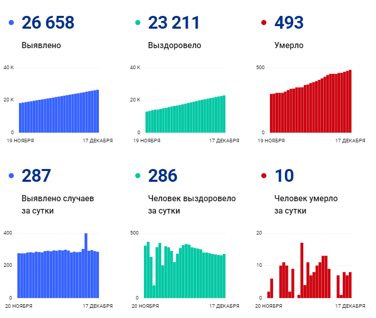 По данным сайта стопкоронавирус.рф, на 18 декабря в Коми официально подтверждены 26 658 случаев заболевания новой коронавирусной инфекцией (+287 за сутки).