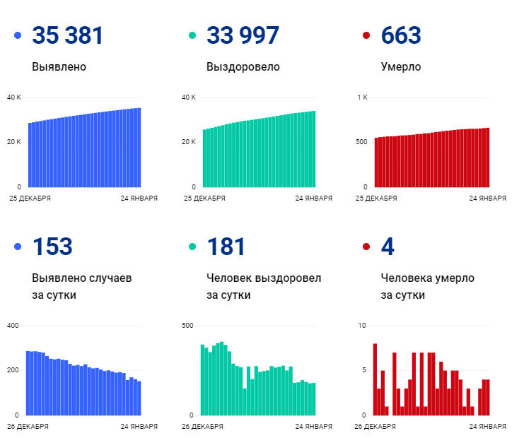 По информации сайта стопкоронавирус.рф, на 11:00 24 января 2021 года в Коми официально подтверждены 35 381 случаев заболевания новой коронавирусной инфекцией (+153 за сутки).