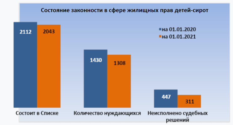 За 2020 год исполнено 155 судебных решений о предоставлении жилого помещения, 367 сирот были обеспечены жильем.