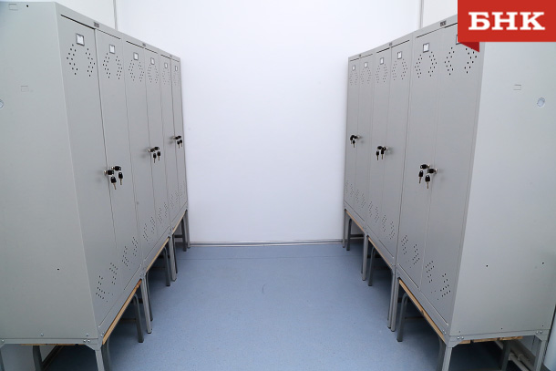 На первом этаже — блок раздевалок. Это вместительное помещение со всем необходимым: основной зал, санузел с душевыми, массажный отсек, тренерское отделение, сушилка. Всего таких раздевалок — 13: десять для спортсменов и три для тренеров.