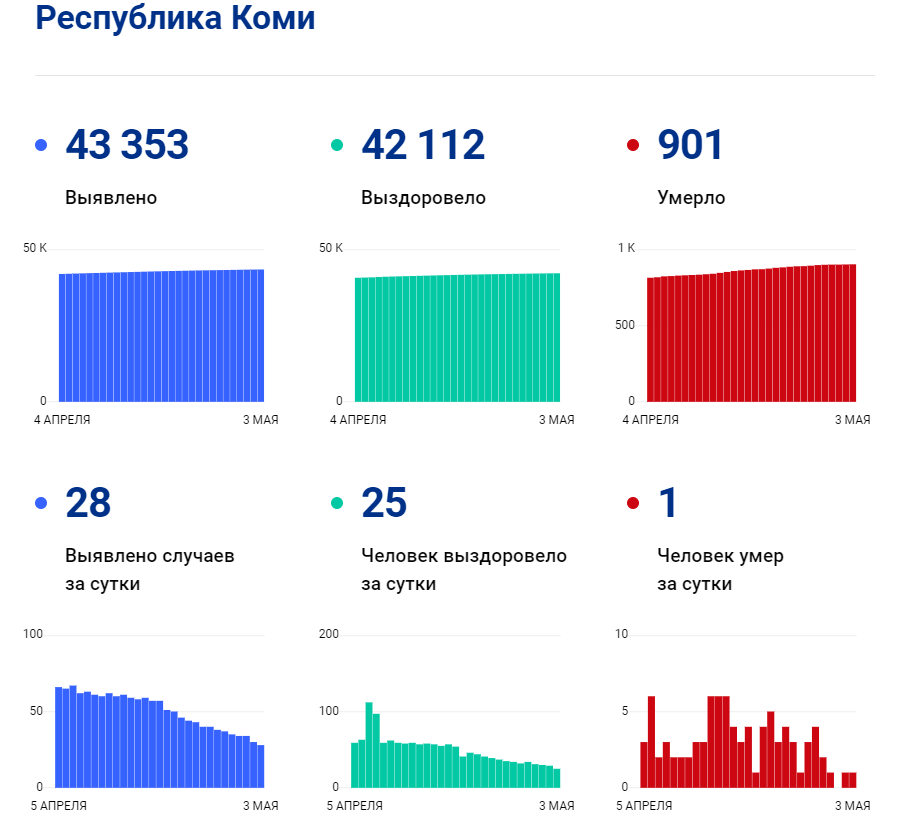 По данным сайта стопкоронавирус.рф, за сутки в республике зарегистрировано 28 новых случаев заболевания коронавирусной инфекцией. Выздоровели – 25, скончался – один человек.