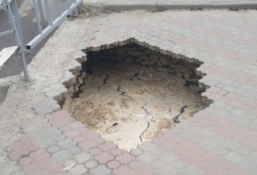 Между тем, как сообщает народный корреспондент, теперь асфальт провалился на перекрестке ул. Домны Каликовой и Кирова.