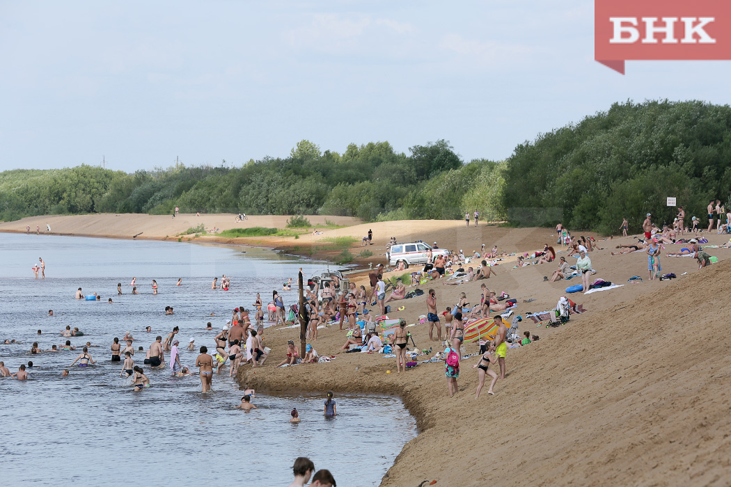 В разгар жары сыктывкарский пляж полон отдыхающими. Температура воздуха только 24 июня по прогнозам синоптиков составила +28…+30 градусов.