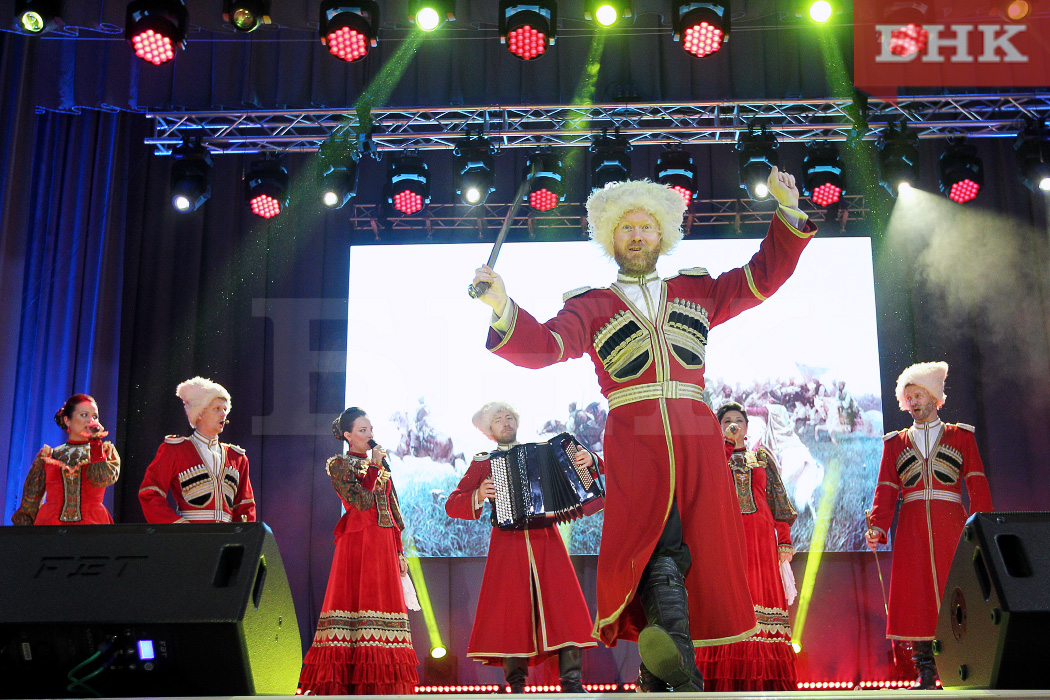 Зал восторженно аплодировал песням и народным танцам. Завершилась концертная программа выступлением Московского казачьего хора. Первая их песня — Казачья походная — превратилась в настоящее представление: с имитацией состязаний с нагайками, с демонстрацией искусного владения саблями. Хор исполнил не только известные фольклорные композиции, но и авторские песни.