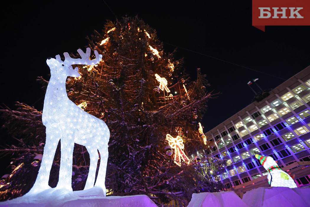 Главную новогоднюю ель Сыктывкара окружили олени и сказочные персонажи