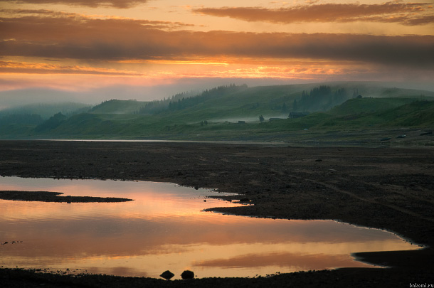 Отгуляв на празднике, мы отправляемся встречать рассвет на реку. Наши коллеги все эти дни нам неустанно повторяли, что рассветы и закаты на Печоре очень красивые, а некоторые известные фотографы именно на них сделали себе имя. Вода в реке очень спокойная, с того берега на нас надвигается туман.