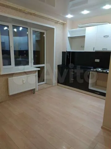 В описании сказано, что это светлая, теплая, уютная студия в новом кирпичном доме. В квартире сделан хороший ремонт. Высокие потолки, большая лоджия.