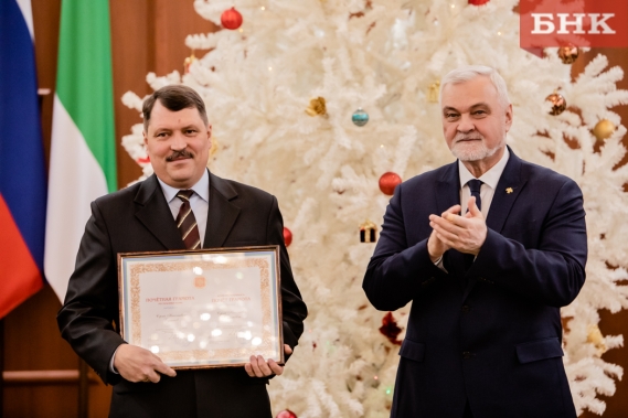 Почетной грамотой Республики Коми были награждены лущильщик шпона фанерного производства ООО «Жешартский ЛПК» Иван Абуков, артист драмы, ведущий мастер сцены Государственного ордена Дружбы народов академического театра драмы имени Савина Елена Аксеновская, агроном по защите растений ООО «Пригородный» Сергей Булатов, заместитель начальника Управления противопожарной службы и гражданской защиты по пожарной безопасности Анатолий Гончаренко, ведущий научный сотрудник группы компьютерных технологий и моделирования отдела флоры и растительности Севера с научным гербарием Института биологии КНЦ УрО РАН Владимир Елсаков, механик по ремонту и обслуживанию тепловых сетей и оборудования участка деревообработки «Човью» департамента по деревообработке ООО «Лузалес» Виктор Ершов, старший геолог лаборатории минерально-сырьевых ресурсов Института геологии имени академика Н.П. Юшкина КНЦ УрО РАН Людмила Ефанова, доцент кафедры экологии и геологии Института естественных наук СГУ им. Питирима Сорокина Татьяна Майорова, оператор производства древесной массы из щепы участка полуфабрикатов высокого выхода цеха бумагоделательной машины № 15 производства бумаги АО «Сыктывкарский ЛПК» Сергей Майсерик, сортировщик фанеры фанерного производства ООО «Жешартский ЛПК» Марина Помылева, врач ультразвуковой диагностики отделения лучевой диагностики Консультативно-диагностического центра Нина Путикова, машинист газодувных машин участка очистки сточных вод цеха водоснабжения и очистки сточных вод АО «Сыктывкарский ЛПК» Светлана Ревкова, директор Усинского политехнического техникума Олег Рубан, машинист крана 5 разряда группы по организации технического обслуживания теплоэнергетического оборудования теплоэлектроцентрали АО «Сыктывкарский ЛПК» Елена Торлопова, начальник отдела продаж АО «Пивоваренный завод «Сыктывкарский» Янина Удоратина и президент сыктывкарской федерации бокса Эдуард Фатыхов.