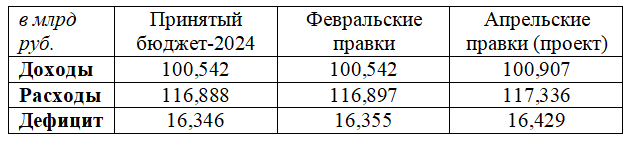 Поправки в бюджет на этот год Госсовет рассмотрит на заседании 24 апреля.