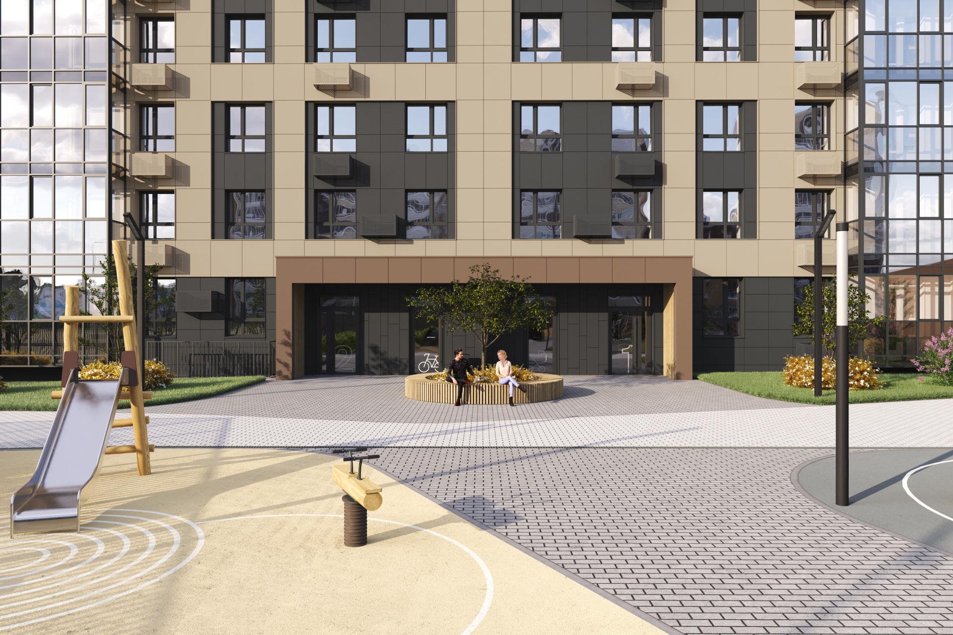 Двор «Нóвы» не только продуманный, озеленённый, красивый, но и увлекательный. Для взрослых есть места для приятного спокойного отдыха или работы на свежем воздухе. А чтобы дети хотели проводить время со сверстниками на улице, застройщик выбрал песочницу под навесом, полосы препятствий для малышей и детей постарше, площадку для воркаута, горки, качели, батут и другое наполнение.