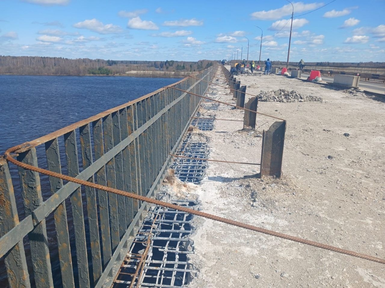 Как сообщалось ранее на БНК, ремонту подлежит почти 500 метров, это будет стоить 266,6 млн рублей. В перечне работ прописаны ремонт опор, железобетонной поверхности балок пролетного строения, устройство мостового полотна, устройство водоотвода с мостового полотна, замена деформационных швов, устройство сопряжения, укрепление конусов, установка барьерного и перильного ограждения, устройство водосбросных сооружений, устройство лестничных сходов, устройство подходов, установка дорожных знаков, ремонт судовой сигнализации, замена конструкций освещения моста и подходов. По условиям госконтракта завершение строительно-монтажных работ запланировано в октябре 2024 года.