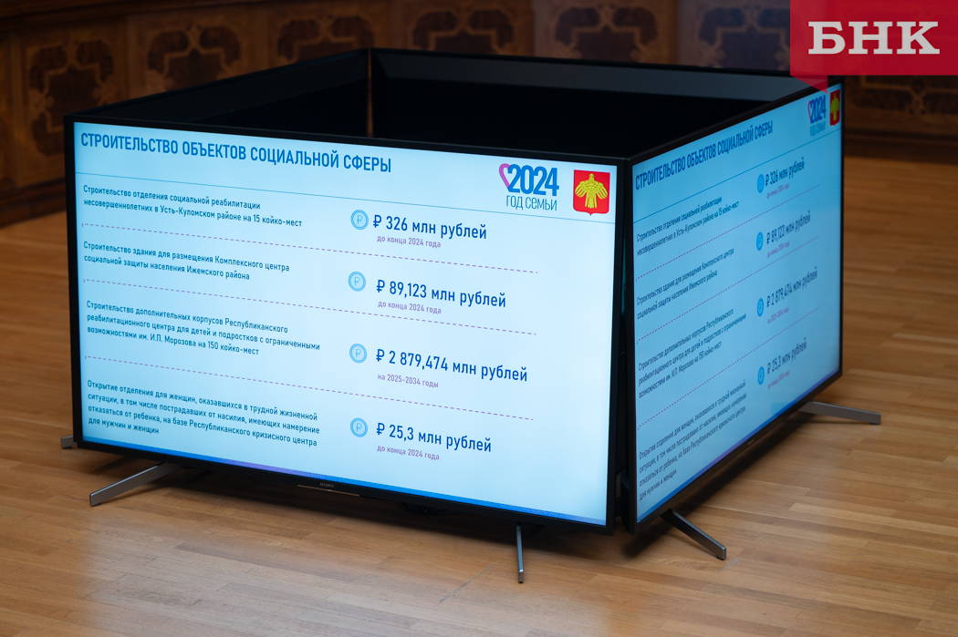 Сейчас ведется строительство отделения социальной реабилитации для несовершеннолетних в Усть-Куломском районе, объект оценивается в 326 млн рублей. Он рассчитан на 15 койко-мест. По словам Екатерины Грибковой, работы завершат до конца 2024 года, и дети «из семей в очень непростой жизненной ситуации будут в безопасности, им будет оказан весь необходимый комплекс социально-медицинских, педагогически, психологических и других услуг».