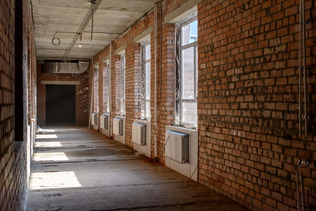 Сейчас на объекте выполняются устройство кирпичных перегородок, кровельные работы, монтаж системы отопления, электромонтажные и отделочные работы, устройство входных групп, вентилируемого фасада, благоустройство территории, обратная засыпка пожарных резервуаров.