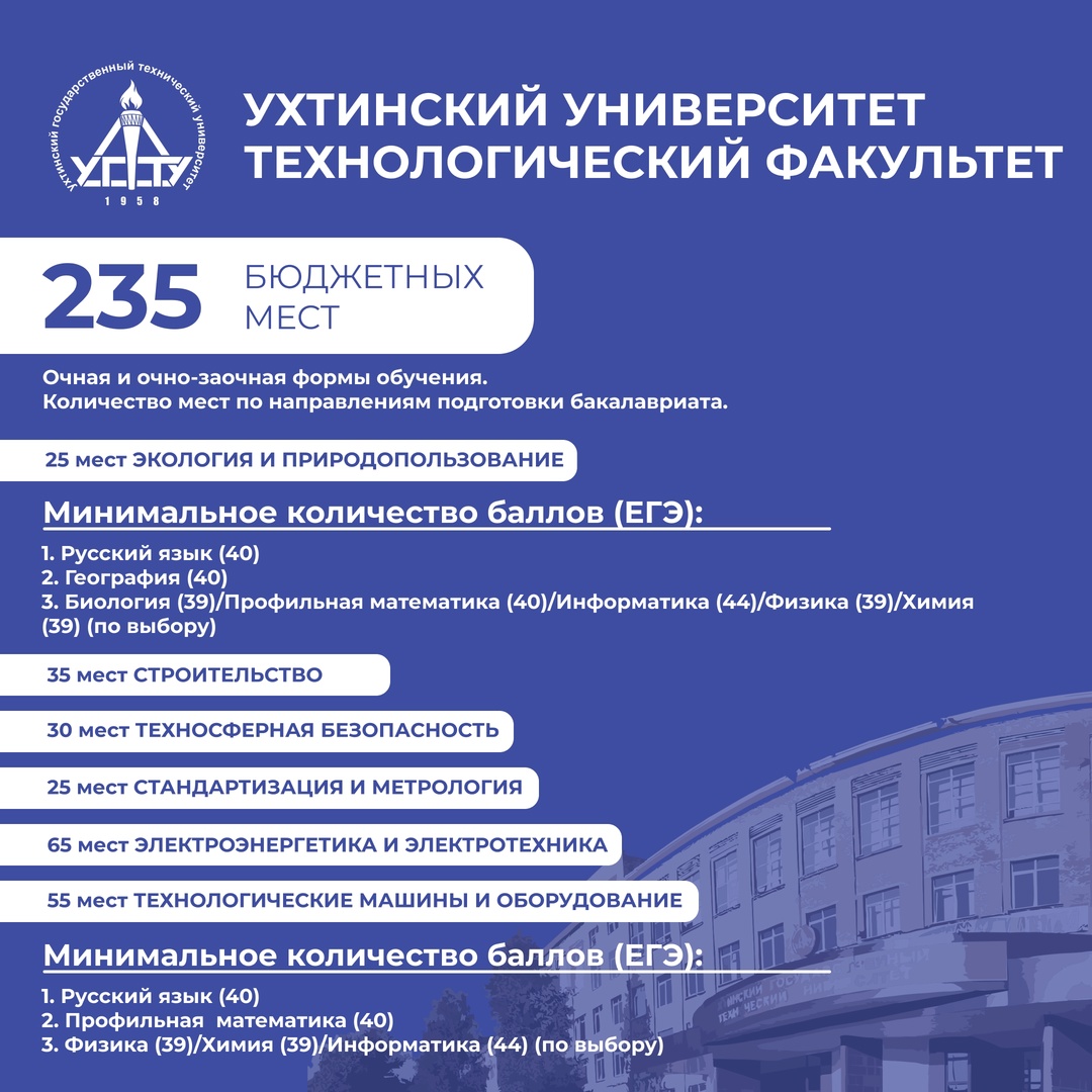 Бюджетные места в УГТУ есть по программам бакалавриата и специалитета на очную и очно-заочную формы обучения. Наибольшее число на технологическом факультете — 235:
