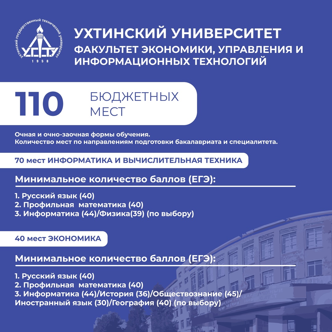 Факультет экономики, управления и информационных технологий предлагает 110 мест по двум направлениям: