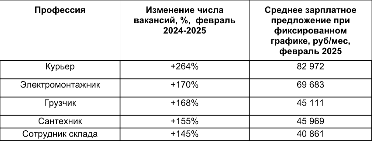 А вот медианные зарплаты в Коми в феврале по сравнению с этим же месяцем в 2024 подросли лишь на 9%: работодатели готовы платить жителям около 67,5 тысячи рублей. Если же смотреть точечно, то наибольший прирост к денежному вознаграждению получили автомеханики: им в среднем предлагают около 86 тысяч рублей, то есть на 53% больше, чем в феврале прошлого года. Примерно такой же процентный прирост получили и слесари, правда, в абсолютном значении их сегодняшние потенциальные зарплаты близки к 158 тысячам.