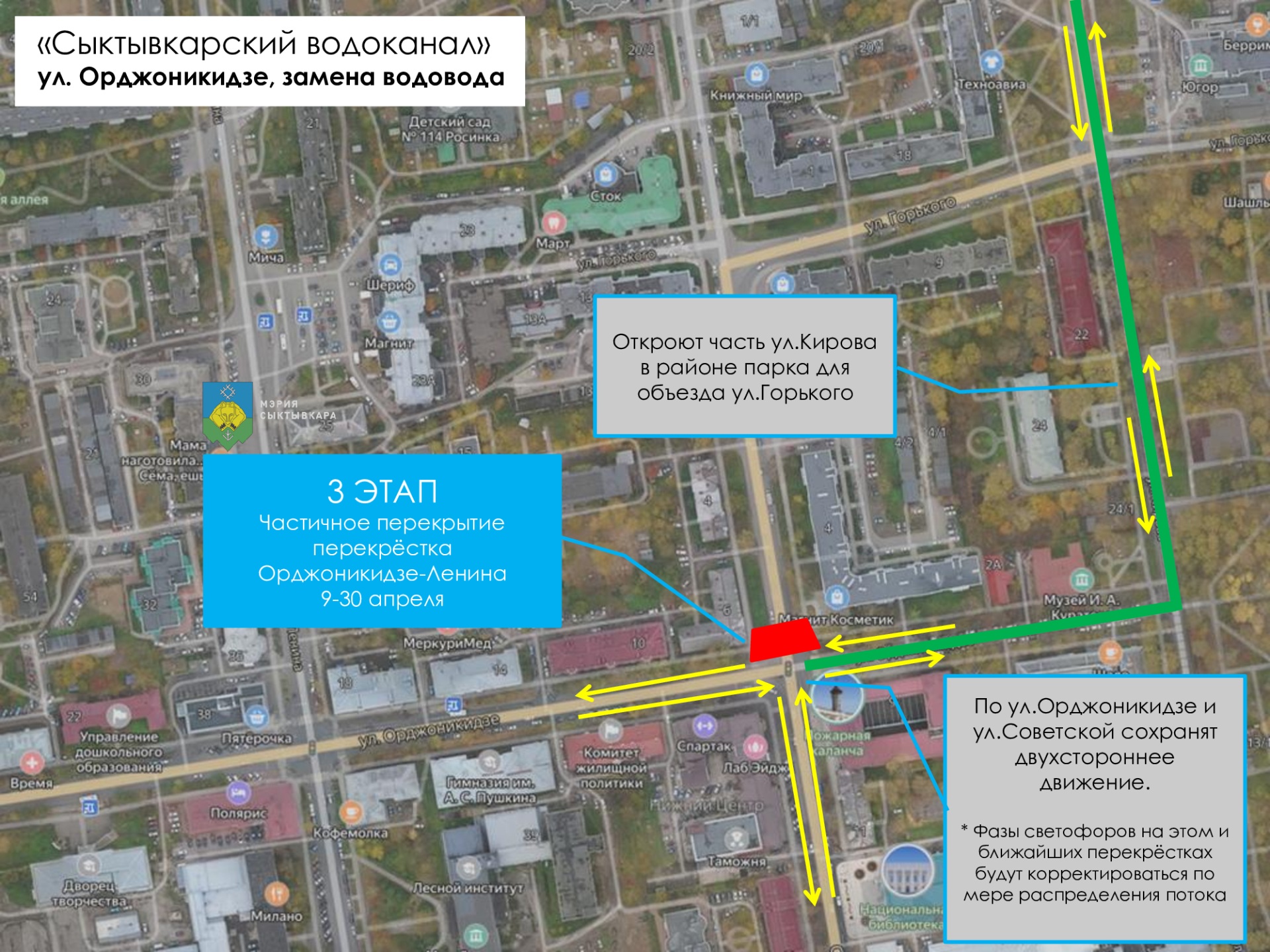 Три последующих этапа планировалось реализовать с перекрытием улице Орджоникидзе. Теперь план скорректирован таким образом, чтобы сохранить для горожан возможность проезда привычным маршрутом, сообщила пресс-служба мэрии Сыктывкара.
