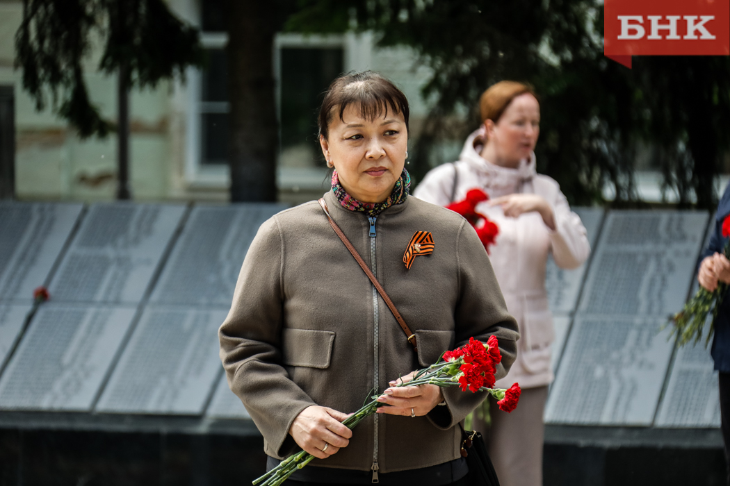 Днем прошла церемония возложения цветов к мемориалам «Вечная слава» и «Скорбящий солдат». Участвовали в ней члены правительства Коми во главе с заместителями председателя Владимиром Казаковым и Екатериной Грибковой, депутаты Государственного совета, представители администрации Сыктывкара вместе с мэром Владимиром Голдиным, а также силовые и надзорные ведомства. Почетное место было у ветеранов Великой Отечественной войны. Возложили цветы к памятникам общественники и военнослужащие СВО.