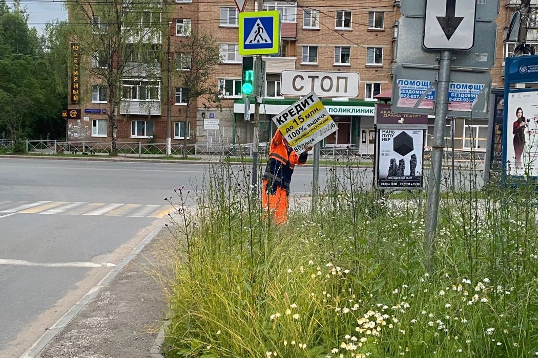 Работники «Дорожного хозяйства» за ночь сняли десятки объявлений.