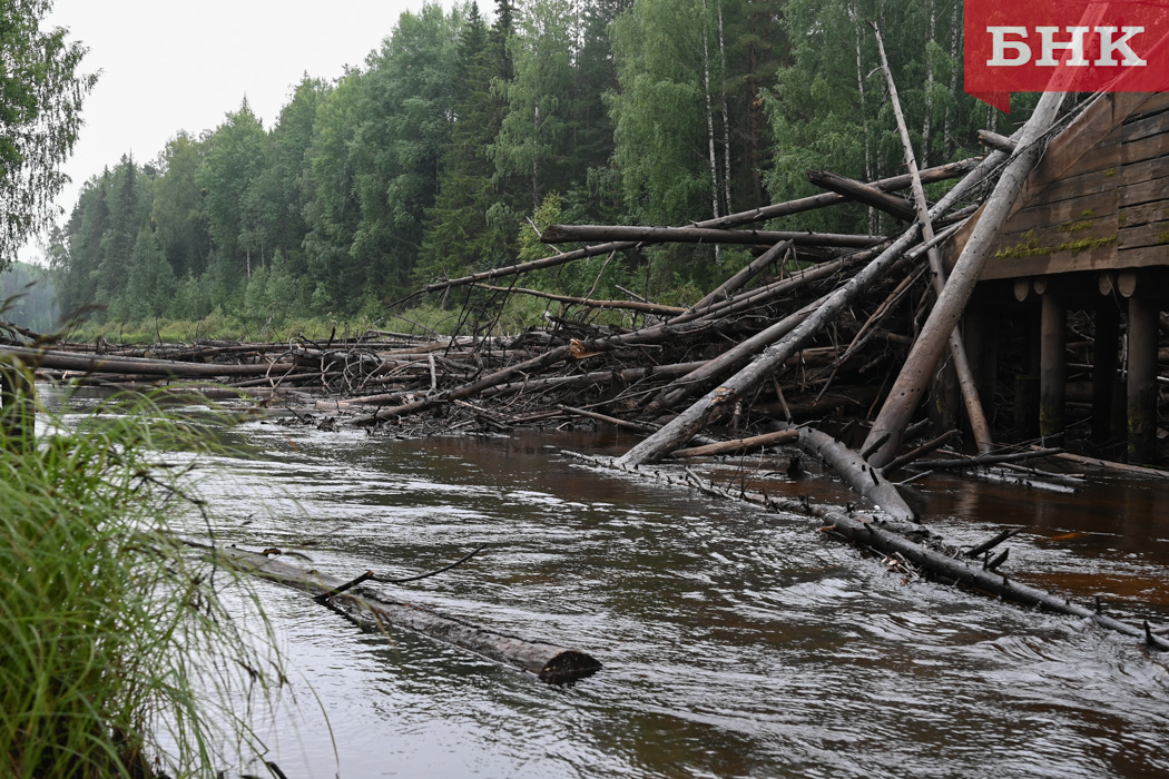 Затор в водоеме местные жители обнаружили около трех недель назад. Он образовался в районе построенного еще в советские годы деревянного моста на лесной дороге: цельные стволы деревьев и сухостой перегородили реку, их принесло с верхнего течения. Участок принадлежат лесному фонду, поэтому районная администрация за бюджетные средства не может предпринимать какие-либо действия на этой территории.