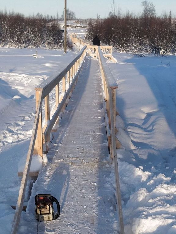 В поселке Кажым реализовали проект «Безопасное движение». В рамках инициативы выполнили замену старого настила и перил тротуара, соединяющего улицы Первомайская и Школьная.
