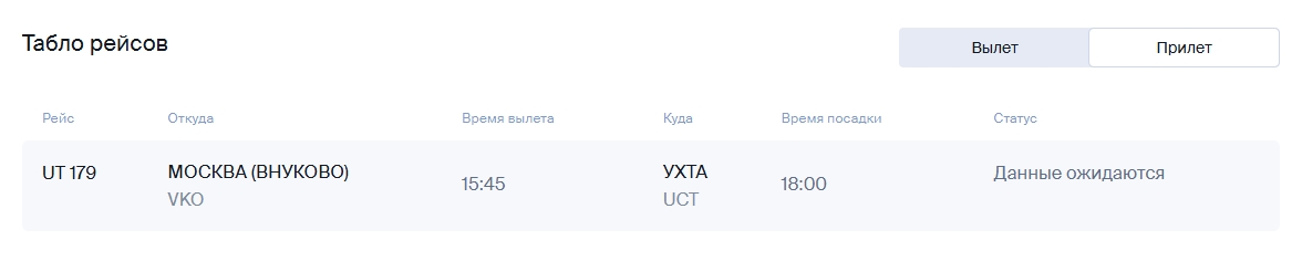 Рейсы, связывающие Усинск и Москву, 28 февраля тоже задержаны. В столицу самолет полетит не в 15:00, а в 19:20, в противоположную сторону — не в 10:50, а в 16:00.
