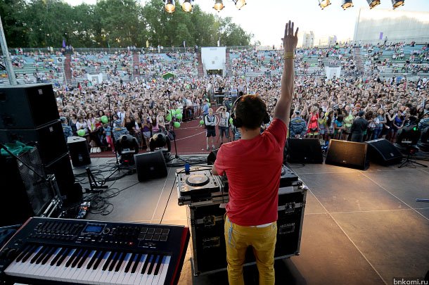 «Облачная дискотека» на республиканском стадионе в Сыктывкаре прошла под двучасовой сет Dj Efremov. Компанию ему составили артисты Freak Show «EUPHORIA», которые в течение часа выходили на сцену в различных сценических костюмах.