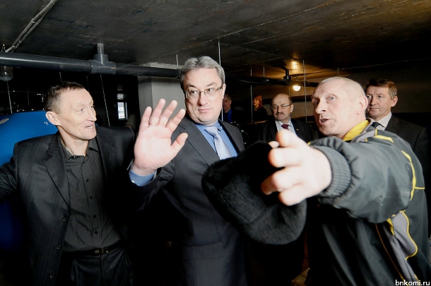 В ходе экскурсии по физкультурно-спортивному комплексу Княжпогостского райцентра Вячеслав Гайзер в сопровождении руководителя спортагентства РК Николая Гордеева осмотрел зал для тренировок, ванны для взрослых и детей, спустился в помещение, где размещено оборудование для очистки и обработки воды в бассейне.