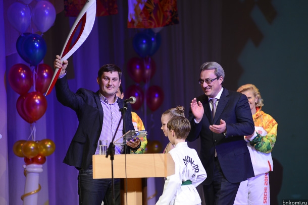 - Предлагаю сделать факел Олимпийского огня переходящей наградой. По итогам года вручать ее мы будем лучшей детской спортивной школе. Я уверен, что это станет еще одним отличным стимулом для того, чтобы наши дети с удовольствием занимались физкультурой и придерживались лучших спортивных принципов, как во время занятий, так и в повседневной жизни, - с этими словами Вячеслав Гайзер вручил факел представителю ухтинской ДЮСШ единоборств имени Эдуарда Захарова.