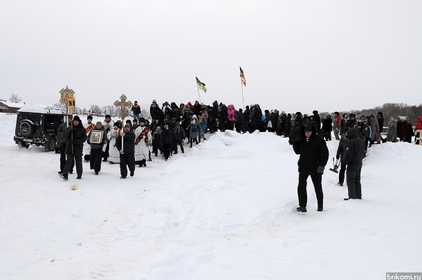 По случаю Крещения Христа сегодня в Сыктывкаре прошел крестный ход. В 10.20 утра колонна около 10 человек двинулась от епархиального управления, прошла по улице Ленина до Свято-Стефановского кафедрального собора. По дороге к шествию присоединялись прохожие. Затем крестный ход отправился вниз по Советской, далее по улице Кирова до купели на Сысоле.