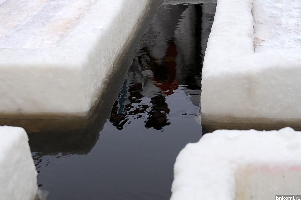 Кстати, во время молебна под ногами собравшихся хрустнул лед. Толпа тут же отошла подальше от креста. После завершения службы горожане кинулись набирать святой воды, кто-то просто умывался и мочил руки. В то же время к купели стали подходить желающие окунуться, в основном, мужчины. На льду были организованы парковка, горячий чай с выпечкой и теплые палатки для мужчин и женщин.
