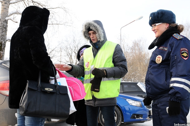В преддверии Татьяниного дня Сыктывкарский отдел ГИБДД провел акцию, поздравив с наступающим праздником водителей Татьян. Сегодня с полудня возле ледового дворца «Северная Олимпия» добросовестные водители Татьяны могли получить подарки от госавтоинспекторов.