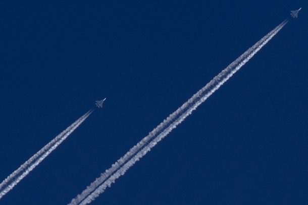 Фотокорреспондент БНК заметил сегодня в небе над Сыктывкаром истребителей. В 14.50 над столицей республики были замечены пара истребителей Су-34, которые летели на запад.