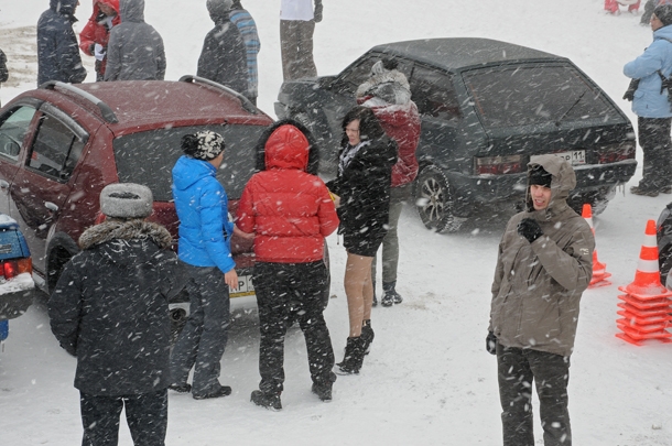 В программе значились соревнования среди автолюбительниц и конкурс на лучший тюнинг авто. Параллельно водители квадроциклов показывали свое мастерство, а владельцы внедорожников устроили автоперетягивание каната. Никому не испортили настроение вьюжная погода и мокрый снег, кроме, пожалуй, операторов и фотографов.