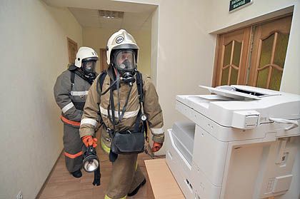 Пожарные учения в сыктывкарской мэрии. Фото Кирилла Затрутина