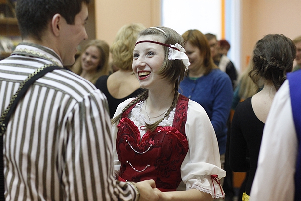 Молодежная вечеринка «Ночь среди книг» началась в 18 часов и сразу же увлекла гостей латиноамериканскими ритмами. На мастер-классе школы танцев «Armeny Casa» почти два десятка участников библионочи учились танцевать бачату – один из самых простых латиноамериканских танцев, который зародился в 30 годы прошлого века в Доминикане. Возможность потанцевать на библионочи представлялась еще трижды – своими умениями делились танцевальный коллектив «Tanzkreis», студия «Шпильки» и другие коллективы.