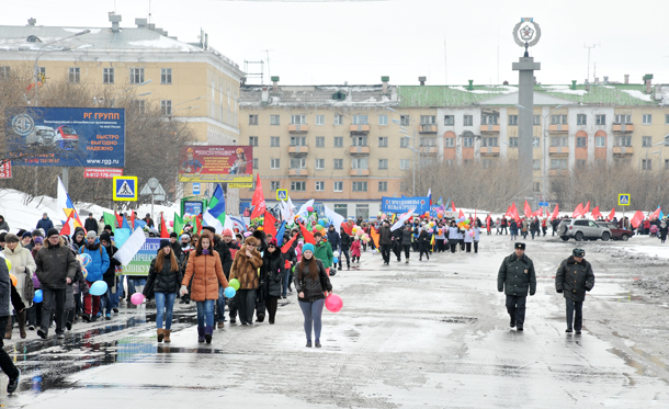 По центральной улице города шли сотрудники органов власти, работники учреждений культуры, спорта, здравоохранения, воркутинских предприятий и организаций, представители различных политических партий и общественных объединений, территориальной организации Независимого профсоюза горняков в Воркуте, студенты средних и высших учебных заведений, ветераны.