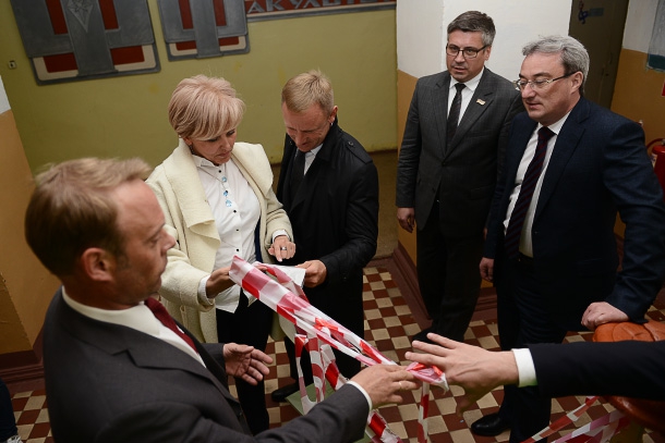 После двух совещаний в Сыктывкарском университете Дмитрий Ливанов в сопровождении временно исполняющего обязанности главы региона Вячеслава Гайзера, министра образования Коми Владимира Шаркова, заместителя главы Тамары Николаевой и Марины Истиховской отправился в первый корпус бывшего КГПИ. Для министра сделали исключение и пустили на четвертый этаж здания, вход на который из-за аварийного состояния строения закрыт с 2008 года. Убедившись, что здание требует серьезного ремонта и, соответственно, крупных вложений, министр отправился в независимый центр проведения ЕГЭ. Напомним, Республиканский центр был открыт в конце апреля и стал первым подобным учреждением в стране.
