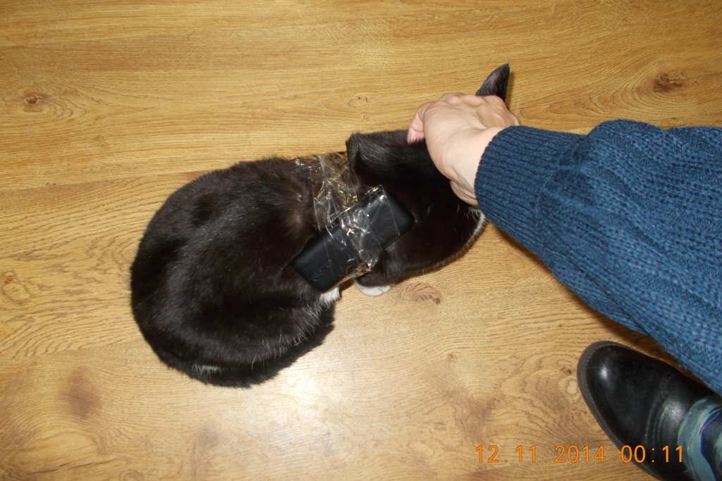 Сотрудники ИК-19 в ухтинском поселке Бельгоп сегодня ночью на контрольно-пропускном пункте по пропуску транспортных средств обнаружили кошку с закрепленными на спине сотовыми телефонами.