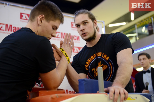 В одном из торговых центров Сыктывкара обладатели крупных бицепсов и трицепсов по-мужски сразились в поединке по армрестлингу, устроив на радость публике зрелищную битву титанов.