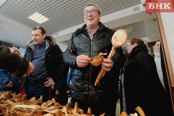 В торговых рядах ремесленников Вячеслав Гайзер приобрел изделия из дерева – ложку и ковш, сообщив, что деревянная утварь пригодится ему в бане. Здесь же глава республики приобрел утицу из капа.