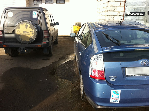- Наклейки будут раздаваться, как георгиевские ленточки, то есть любой желающий сможет приехать к нам и взять ее. Если не сможет наклеить сам — мы поможем. И все это бесплатно, - рассказал руководитель клуба Антон Семенов. - Мы напечатали несколько сотен наклеек, акция ограничена только тиражом, будем раздавать, пока не кончатся.